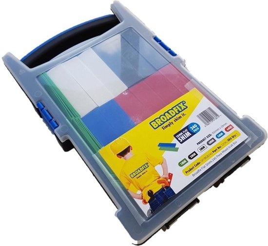 Die flachen Kunststoff-Abstandshalter / Füllplatten von Broadfix mit den Abmessungen 100x28 mm eignen sich zum Ausrichten und Füllen von Strukturen. Die Packung enthält 240 Stück mit einer Dicke von 1mm bis 6mm.