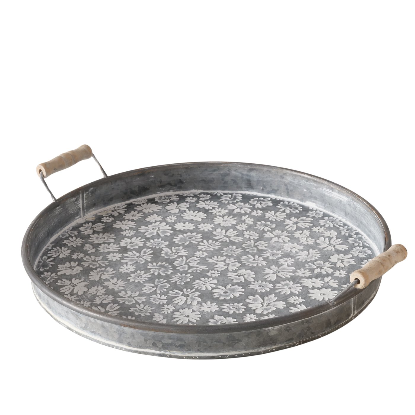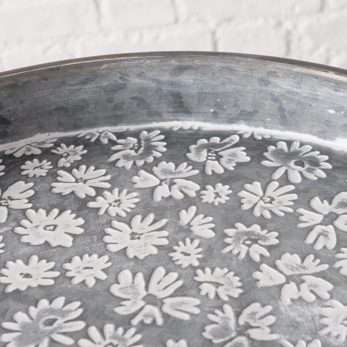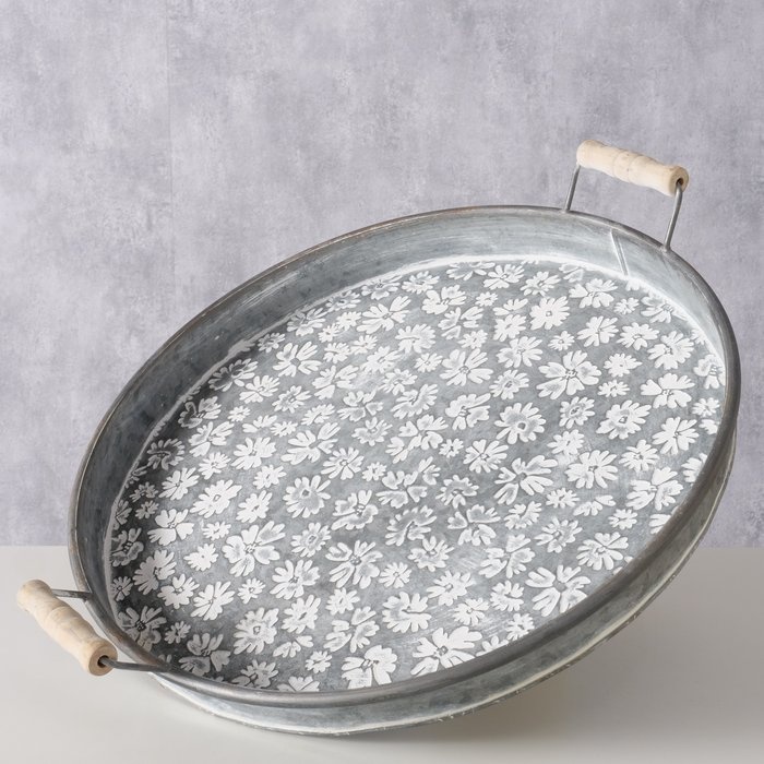 Tablett Polly - Rundes Tablett aus Zink mit Blumenmuster - Ø41 cm - Warehousesupply