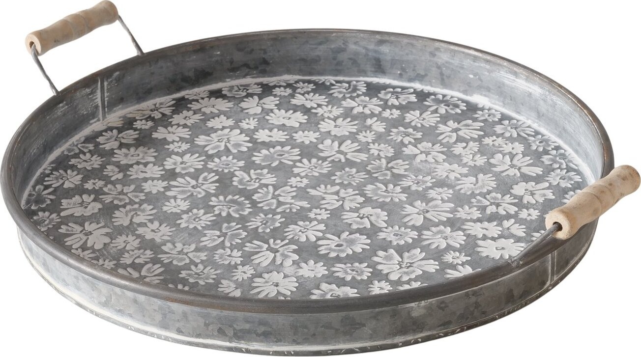Tablett Polly - Rundes Tablett aus Zink mit Blumenmuster - Ø41 cm