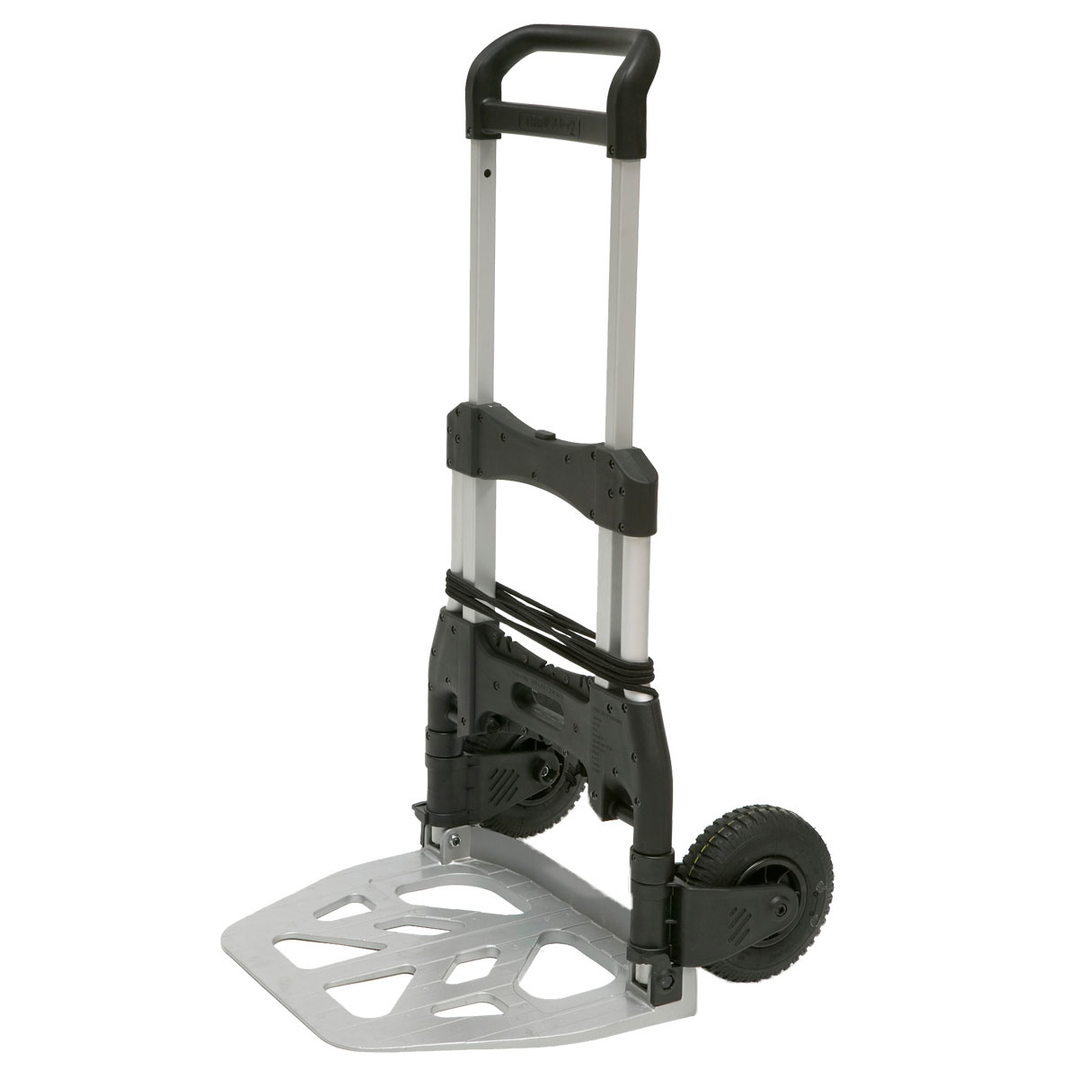 Gefaltet in 10 Sekunden. Ideal für Reisen, Ausstellungen, Büro usw. Zusammengeklappt passen sie leicht in ein Auto. Luft-Räder klappen automatisch. Ausgestattet mit einem elastischen Spanner. Gewicht: 12,8 Kg.(einschließlich Karton 14,8 kg) Tragfähigkeit: : 250 Kg. Ausgefaltet: (LxBxH) 660x650x1190mm. Eingefaltet: (LxBxH) 660x135x855mm. Schaufel: (LxB) 590x450mm. Radgröße: Ø210mm. Abmessungen Karton (1 Stück) (LxBxH) 910x600x140mm.