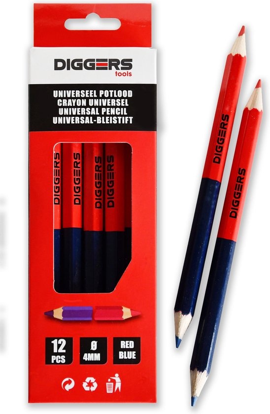 Crayon de construction Diggers 2 couleurs rouge-bleu - 12 pièces -