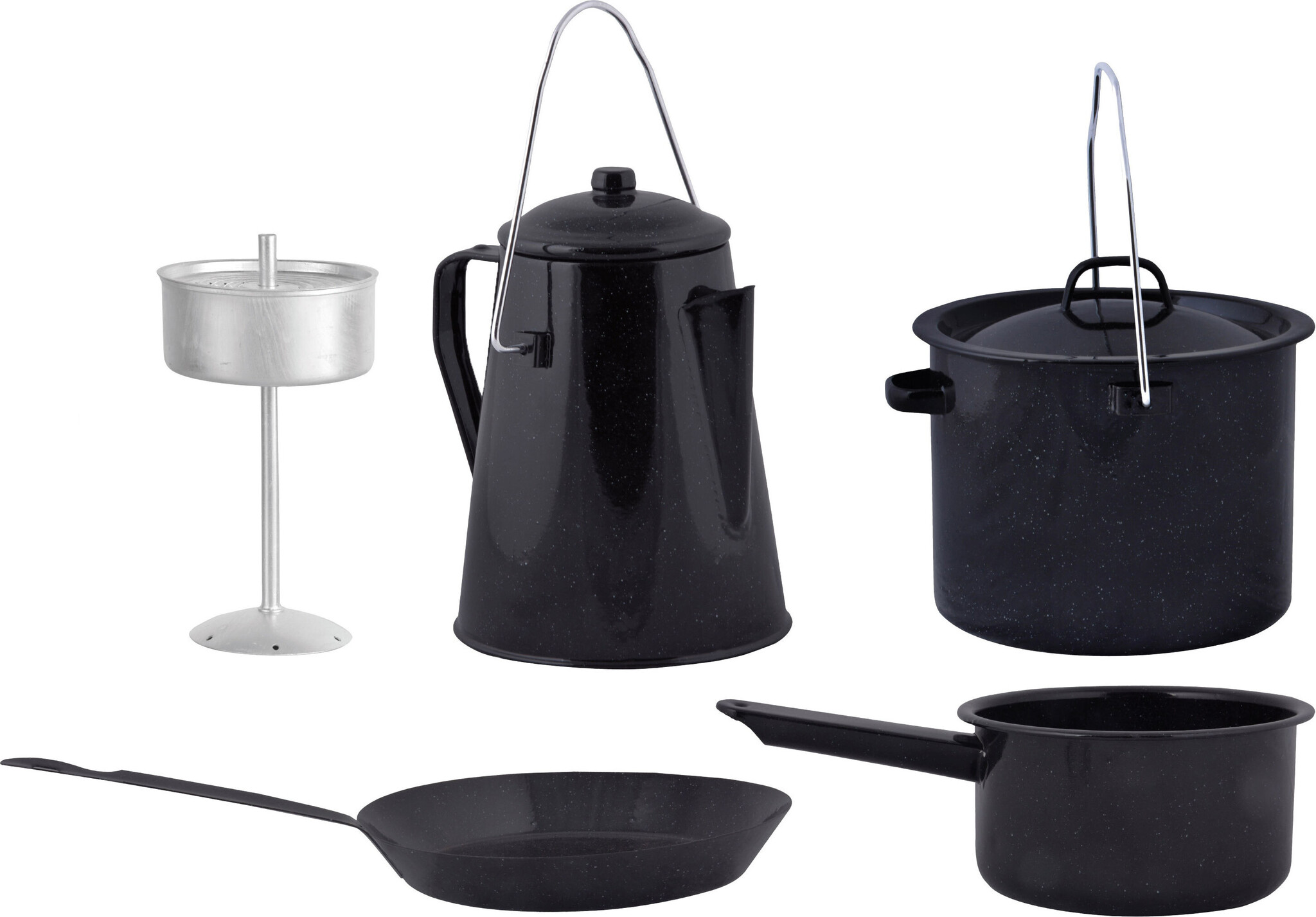 Vous pouvez laisser le barbecue de côté pour un moment, car cuisiner sur le feu de camp avec des amis et la famille est vraiment amusant ! C'est d'ailleurs très facile avec ce set de cuisson. Les casseroles peuvent être suspendues à un trépied ou placées sur une grille de feu de camp. Du ragoût au vin chaud, vous pouvez tout préparer avec cet ensemble complet.