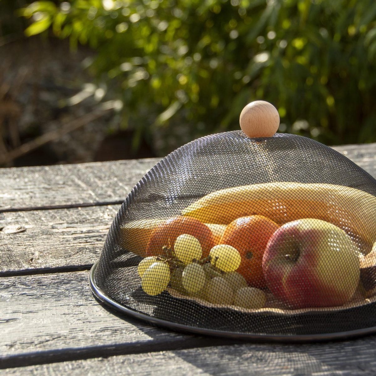 Avec cet élégant anti-fly cap d'Esschert Design, vous pouvez protéger les plats, les fruits, les snacks ou les boissons des mouches, des guêpes et d'autres insectes. Le capuchon est doté d'une structure à mailles métalliques fines et d'un anneau métallique robuste sur le dessus pour le soulever facilement. Sa taille compacte (Ø30 cm) le rend idéal pour les petits plats, assiettes ou verres.