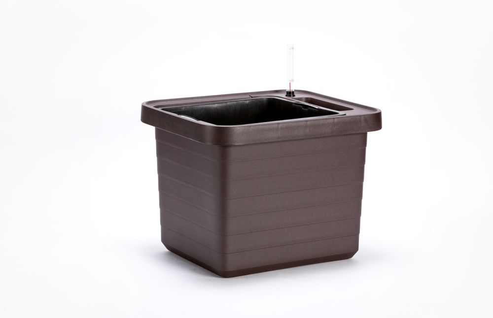 Plastia Berberis Uno Boîte à fleurs auto-arrosante - Chocolat - 18 L Substrat - 9 L Réservoir d'eau