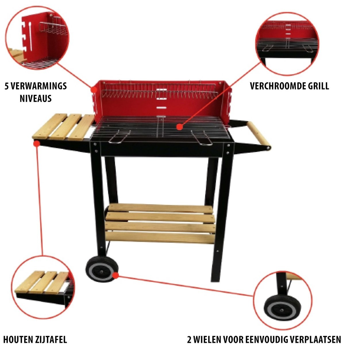 BBQ Collection - Houtskoolbarbecue - Wielen - Verstelbaar Rooster - Windscherm - Zijtafel - Zwart - RoodLees meer