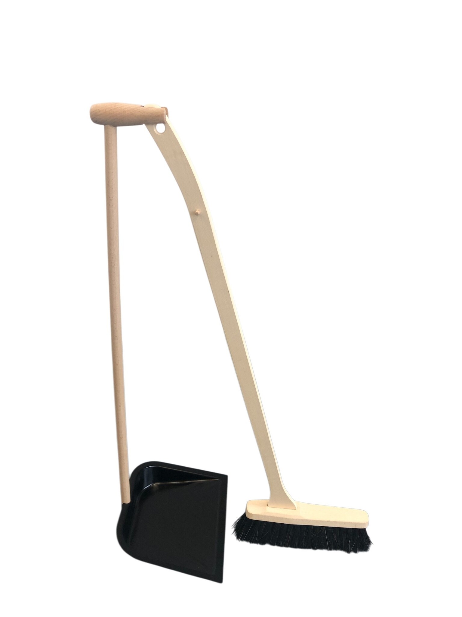 2. Natuurlijke materialen: Deze duurzame set is gemaakt van natuurlijke materialen. De steel is van stevig hout en het stofblik van robuust metaal, wat zorgt voor een lange levensduur en een klassieke uitstraling. De haren van de bezem bestaan voor circa 10% uit natuurlijk haren.