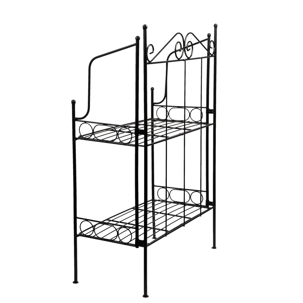 Dankzij het inklapbare metalen frame is de etagère eenvoudig te verplaatsen en op te bergen. Ideaal voor wie houdt van praktisch én decoratief tuinmeubilair.