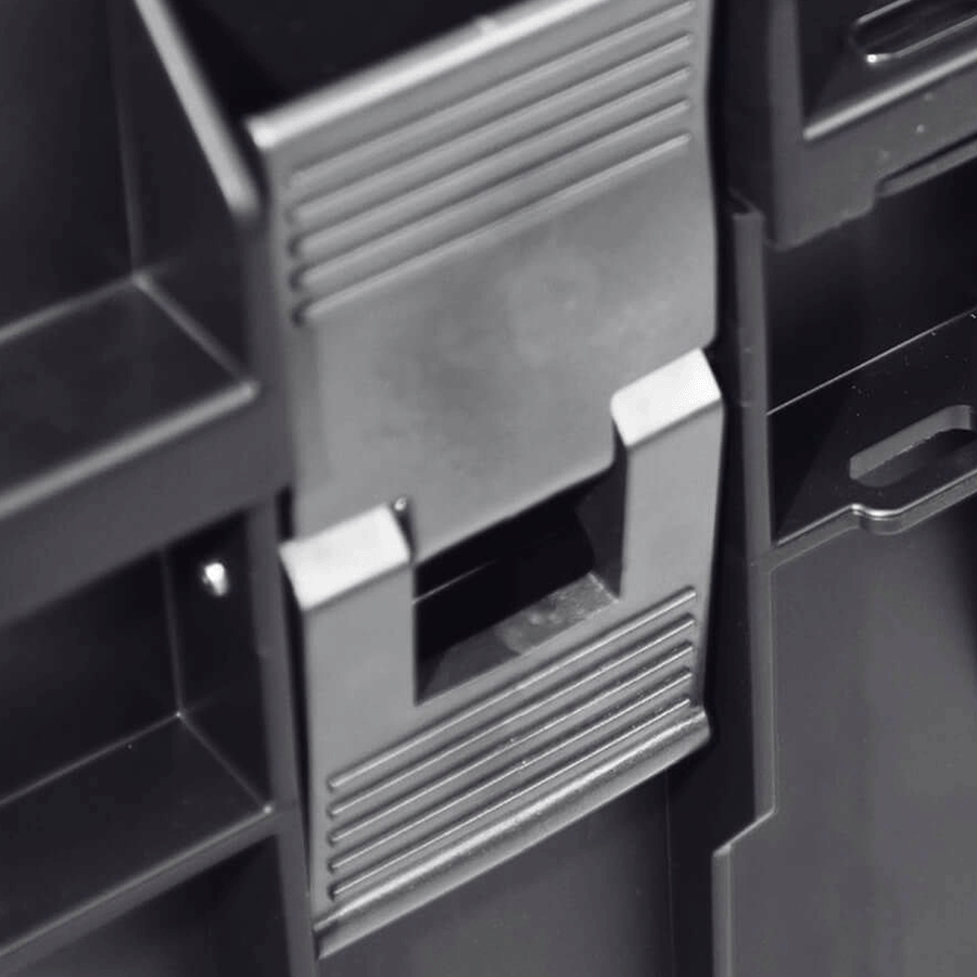 - Aluminium montagerails maken montage op de koffer mogelijk, bijv. planken, buizen, profiel, met traditionele timmerklemmen
