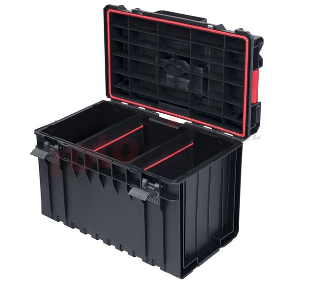 Een zeer ruime gereedschapskist 450 - een diepe koffer met twee verwijderbare compartimenten en een stevig deksel betekent een grote opbergruimte, een stevige zitting en een opstap