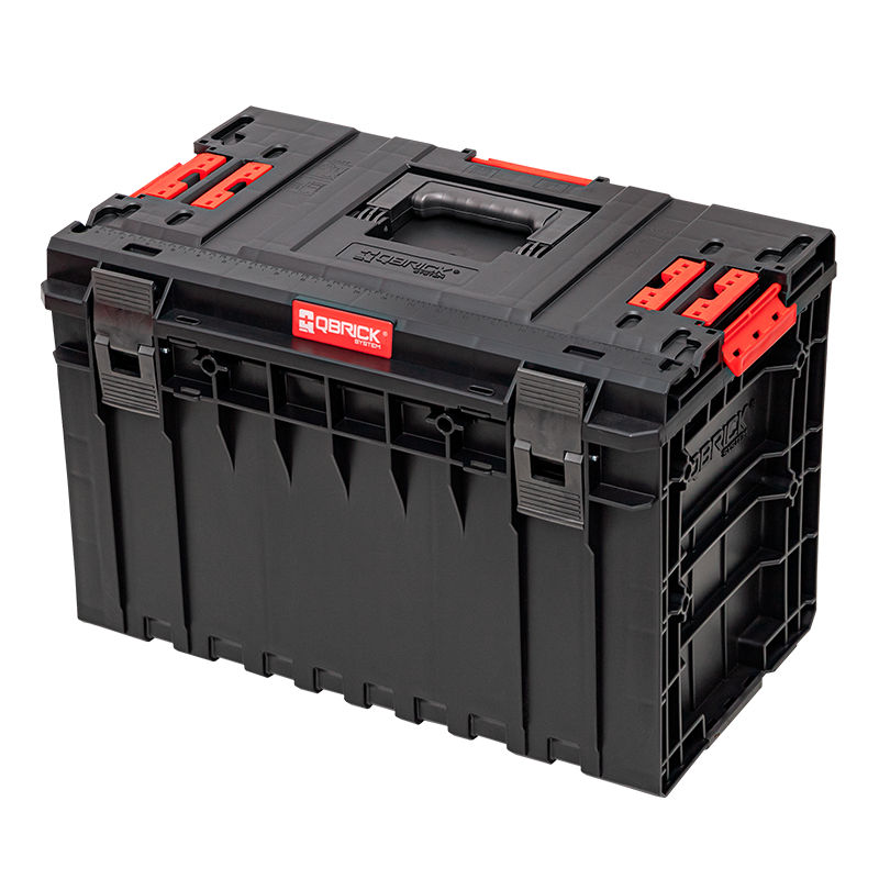 Duurzame connectoren - haken voor een zeer duurzame verbinding van dozen uit de ONE-lijn en twee kleinere PRO-dozen die op de hoes zijn geplaatst, zorgen voor gemakkelijk transport van andere systeemboxen