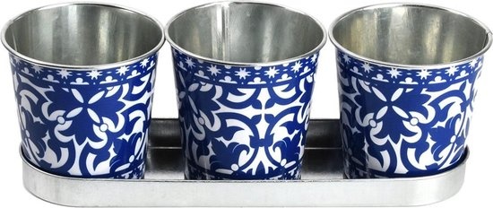 Deze bloempotjes zijn voorzien van een blauw wit ontwerp dat is afgeleid van de bekende Portugese tegels.