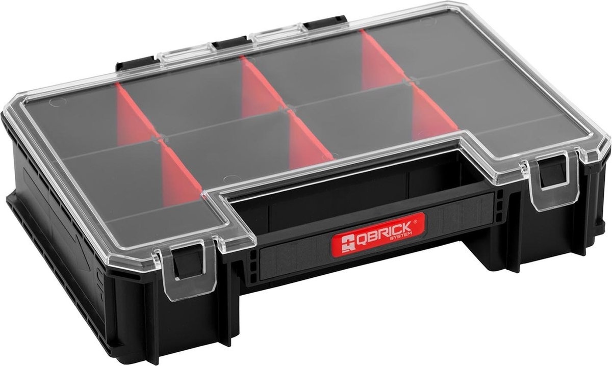Wilt u uw gereedschap overzichtelijk op één plek opbergen, maar toch binnen handbereik? Dan is de Gereedschapswagen set van Qbrick System precies wat je zoekt! Dankzij rubber rollen vervoer je je gereedschap gemakkelijk direct naar je werkplek en heb je alles binnen handbereik. De combinatie van gereedschapskoffer, gereedschapswagen en een kist biedt verschillende afmetingen opbergruimte, die u optimaal voor uw apparatuur kunt gebruiken en die met tussenschotten naar uw idee kan worden ingedeeld. Met de drie opbergers kunnen zelfs kleine onderdelen handig en overzichtelijk worden geordend. De clip-functie houdt alles bij elkaar en kan in elke volgorde worden gebruikt!De gereedschapskist 100 Flex biedt voldoende ruimte voor gereedschap en andere spullen die je nodig hebt voor je werk. Het interieur is flexibel in te delen met vijf scheidingswanden. Extra opbergruimte vindt u in de gereedschapskoffer, die is voorzien van een praktische handgreep. De gereedschapskoffer is voorzien van twee variabele tussenschotten en kan worden uitgerust met de twee Organizers Multi. Bovendien biedt de Organizer Plus extra vakken voor schroeven, boren of soortgelijke kleine onderdelen, die dankzij een handvat gemakkelijk kunnen worden vervoerd.De gereedschapswagen, die is uitgerust met twee rubberen wielen, dient als mobiele basis in deze set. Het interieur van de trolley biedt ook veel opbergruimte voor allerlei soorten gereedschap.