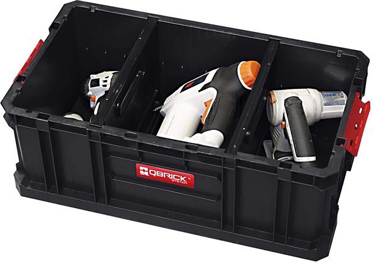 Met het Gereedschapskist System 200 Flex verklaar je de oorlog aan de rommel in je werkplaats. Met twee scheidingswanden biedt de Gereedschapskist optimale mogelijkheden om gereedschap of werkplaatsuitrusting netjes op te bergen. Nog steeds niet genoeg ruimte? Combineer dan gewoon de Gereedschapskist met andere dozen uit de System TWO-serie van Qbrick System!