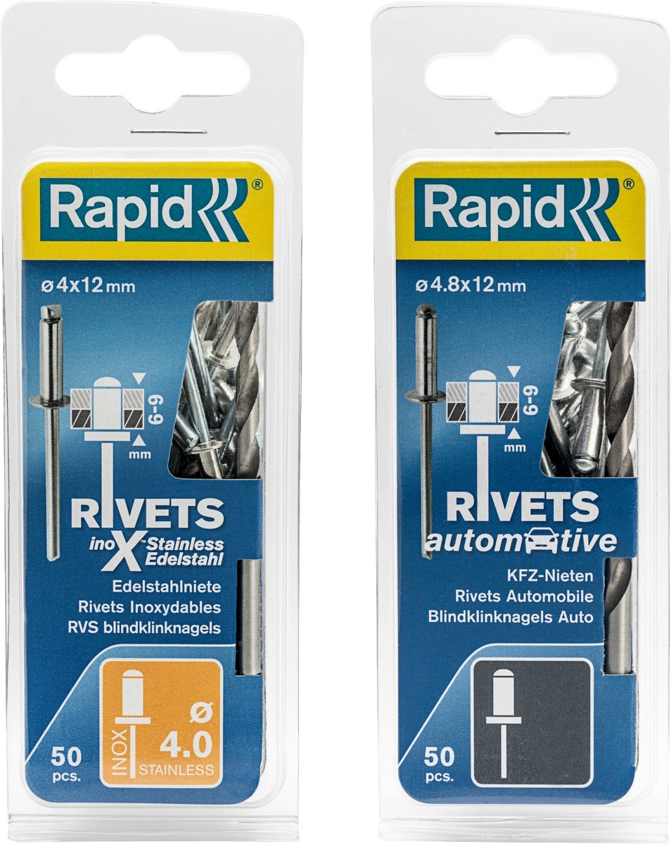 Rapid Automotive blindklinknagels Ø4,8 x 12 mm, 50 stuks + boor - Warehousesupply
