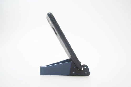 Verstelbare telefoonhouder in donkerblauwe uitvoering. Handig om mee te nemen. Fijn om series/films te kijken vanaf je telefoon of voor het lezen van (informele) artikelen.Lees meer