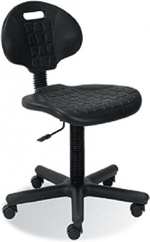 Zwarte GTS werkplaatsstoel op wielen. Stoel met antislip zitting en rugleuning van zacht polyurethaan.